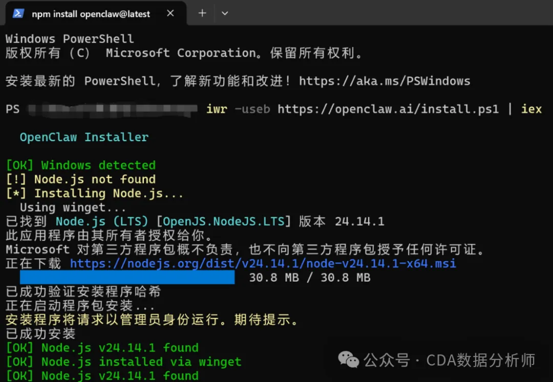安装脚本会自动检测系统、安装依赖、部署OpenClaw并启动配置引导,整个过程大约3分钟。