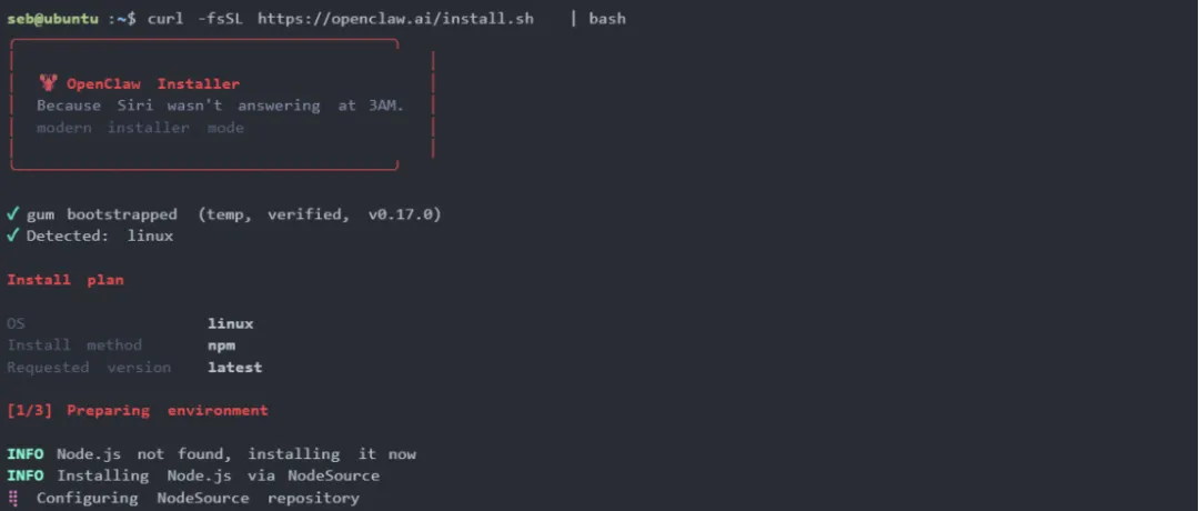 curl -fsSL https://openclaw.ai/install.sh | bash
