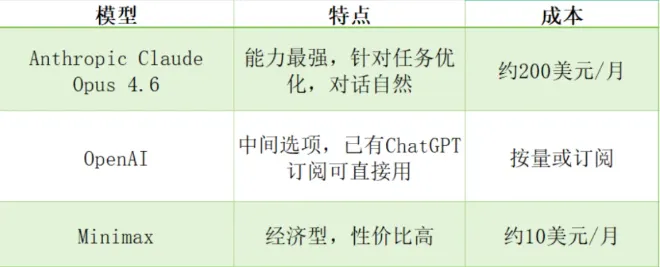 (1)Anthropic 的 Claude Opus 4.6 是最强大的选择。它专门针对这类任务进行了优化,是最聪明的模型,也是最“有温度”的模型,对话体验最自然。缺点是成本较高,每月约 200 美元。