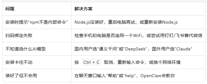 以下整理了一份关于OpenClaw在安装过程中可能会遇到的常见问题以及解决方案: