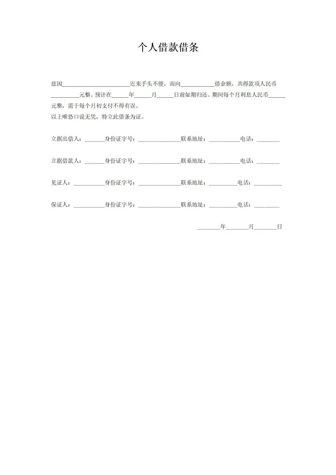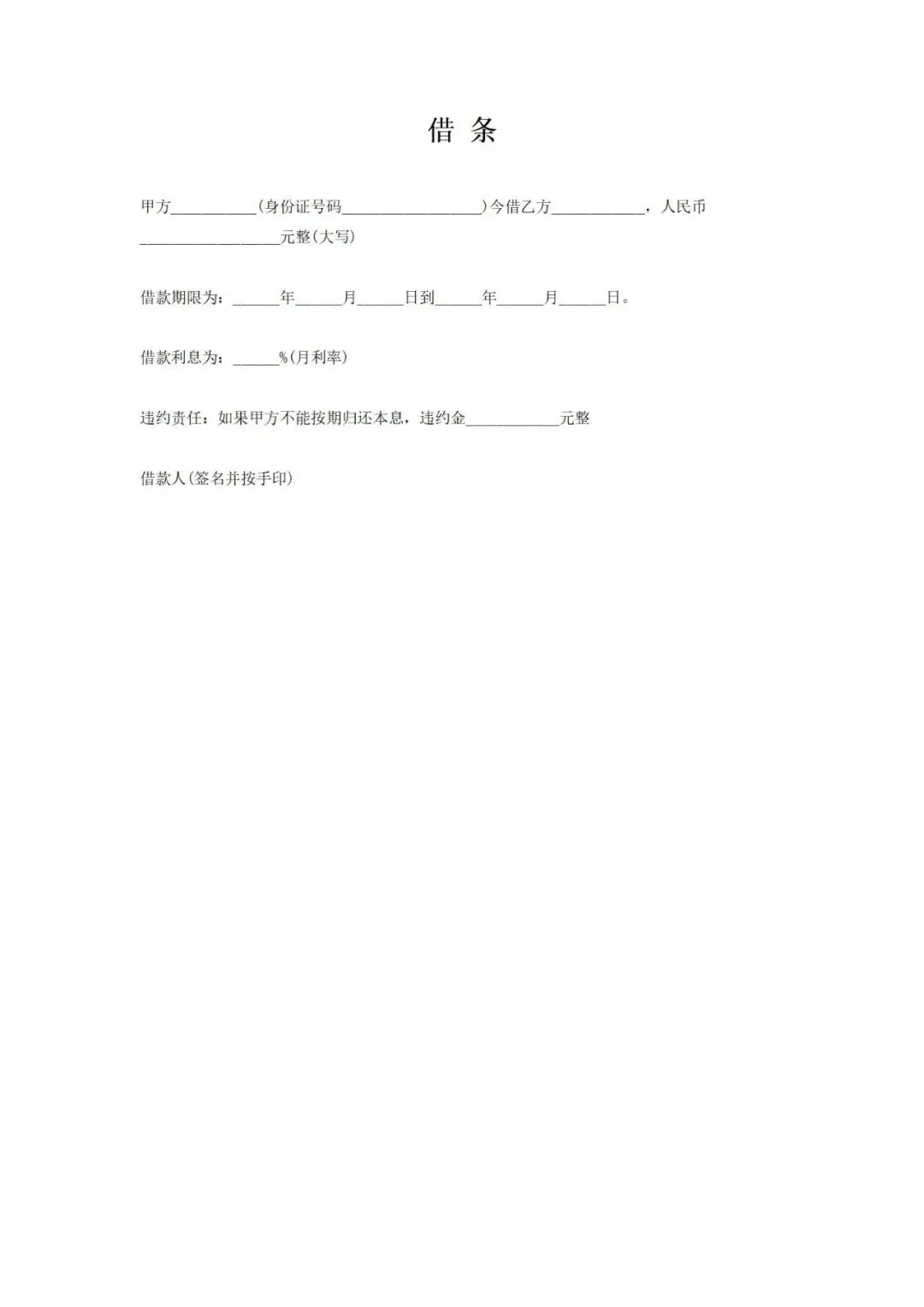 #个人借条电子模板2026免费可打印