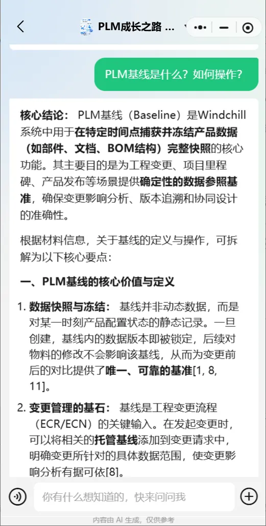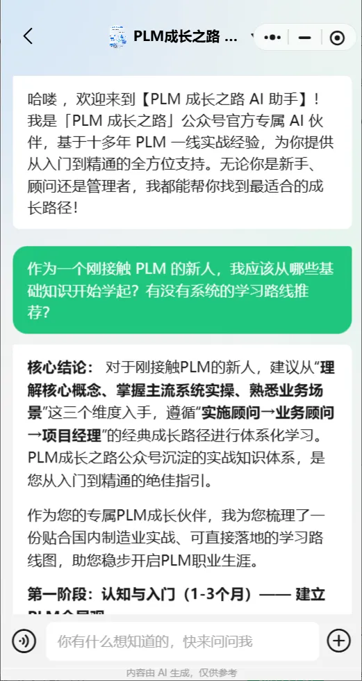 这是我们专属打造的PLM领域智能助手,依托公众号十多年的实战沉淀,只为更好地服务每一位PLM从业者。