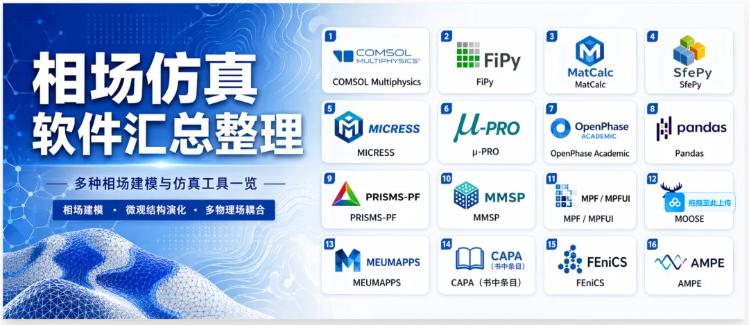 SfePy、FEniCS、MOOSE框架能力很强,但它们更像“能做相场”的通用求解平台,需要更强的 PDE/FEM 背景。 -