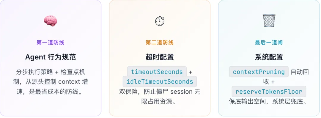 配参数是被动防御,主动防御是在 agent 行为层控制 context 增速。三条最关键的: