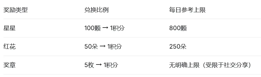 那么,星星、红花、奖章分别怎么获得?每天最多能拿多少?下面帮您全部理清。