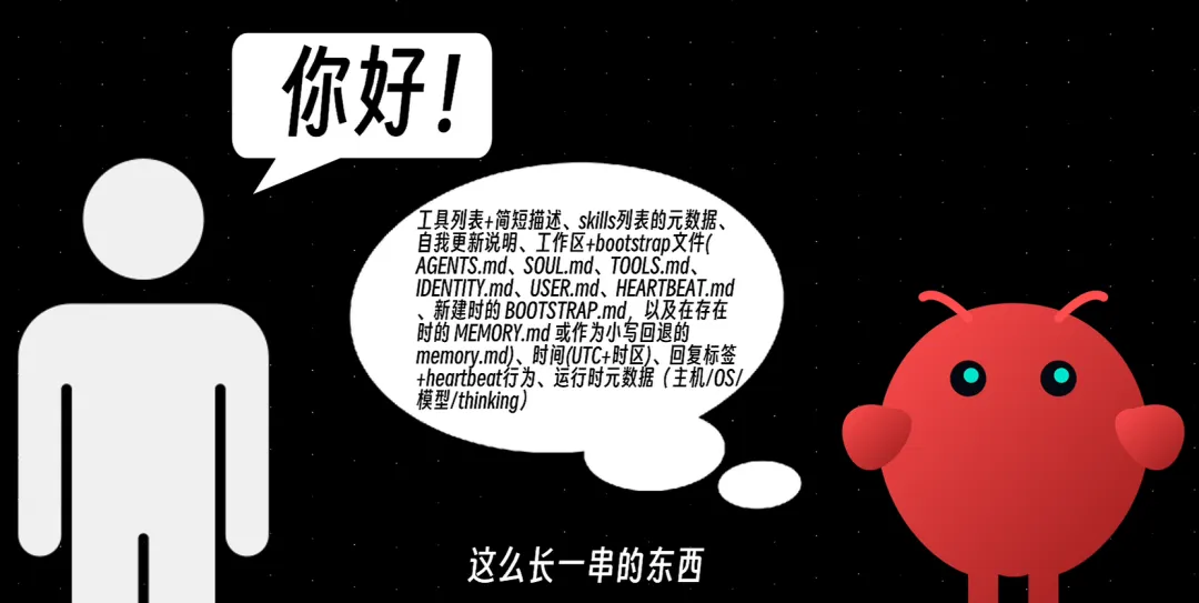 就算你只发一句”你好”,它在收到这两个字之前,还要先处理这么长一串东西。