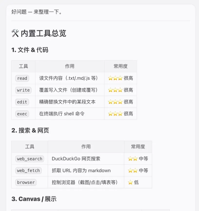 OpenClaw 里有 50 多个内置工具,截图、浏览器这些默认全部打开,元信息会一次性灌进上下文。直接跟龙虾说: