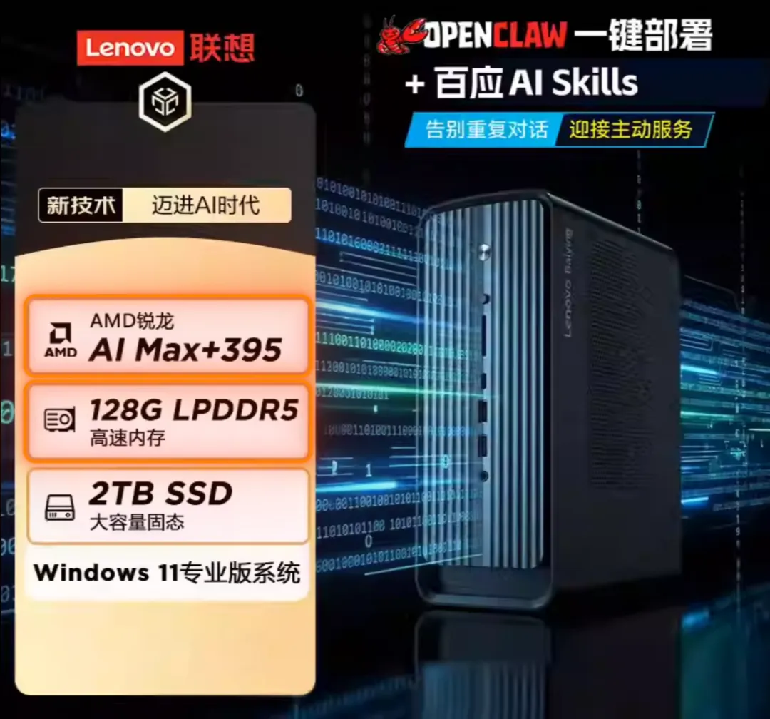 我正打算放弃本地模型的时候,刚好发现我们行政同事在网上下单了一台养虾机,AMD锐龙AI MAX 395,才不到2w就到手了。