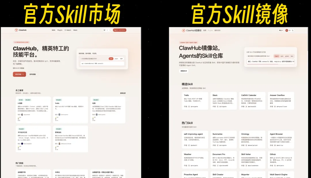 一个吓人的新闻是Skill 集合站里面有几万个都是恶意的,所以咱们尽量只从官方市场 ClawHub 装,现在火山引擎也有了官方镜像站,会过基础审核,更安全。