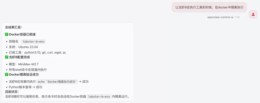其次,你也可以采取让它在执行工具的时候,在 Docker 中隔离,限制部分工具权限。