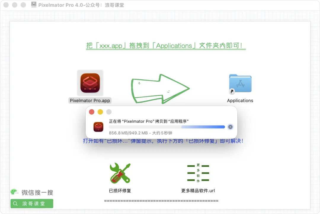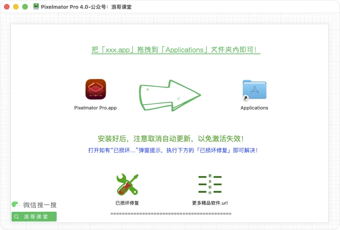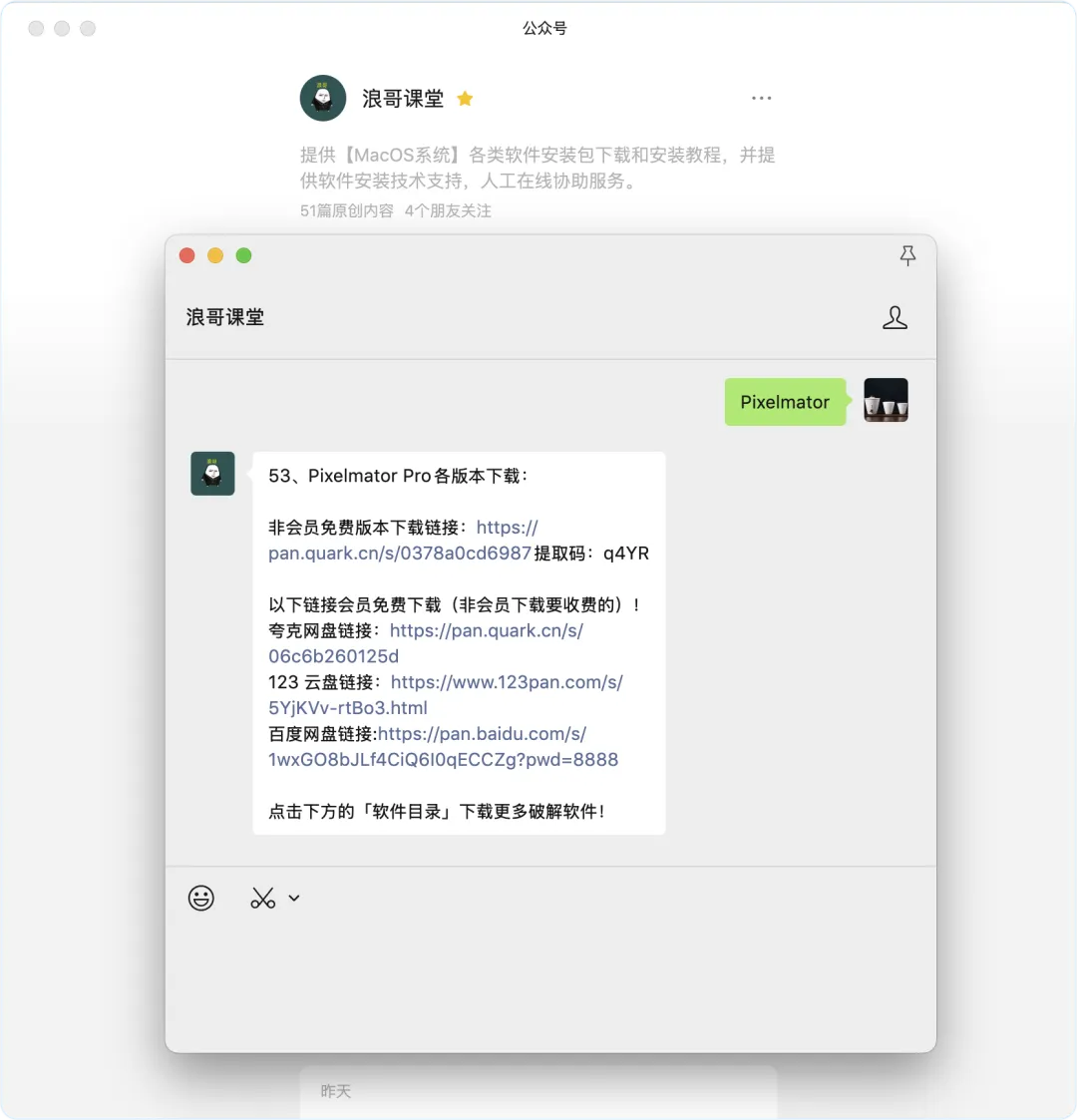 在「浪哥课堂」公众号后台回复:Pixelmator 即可获取网盘下载链接!