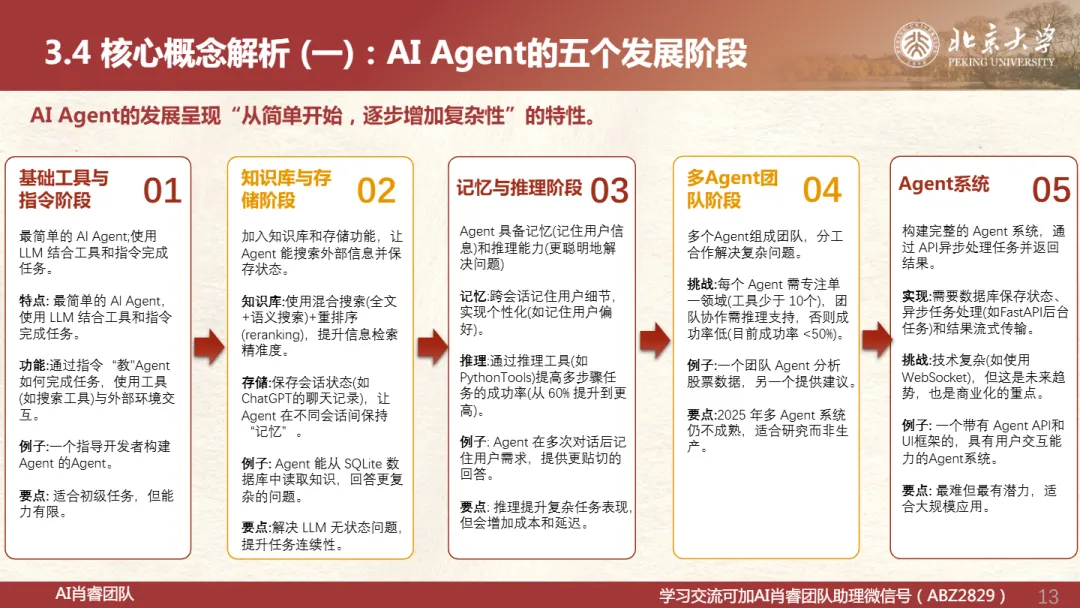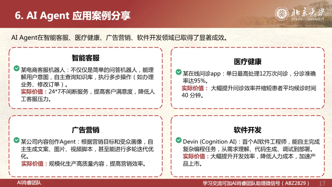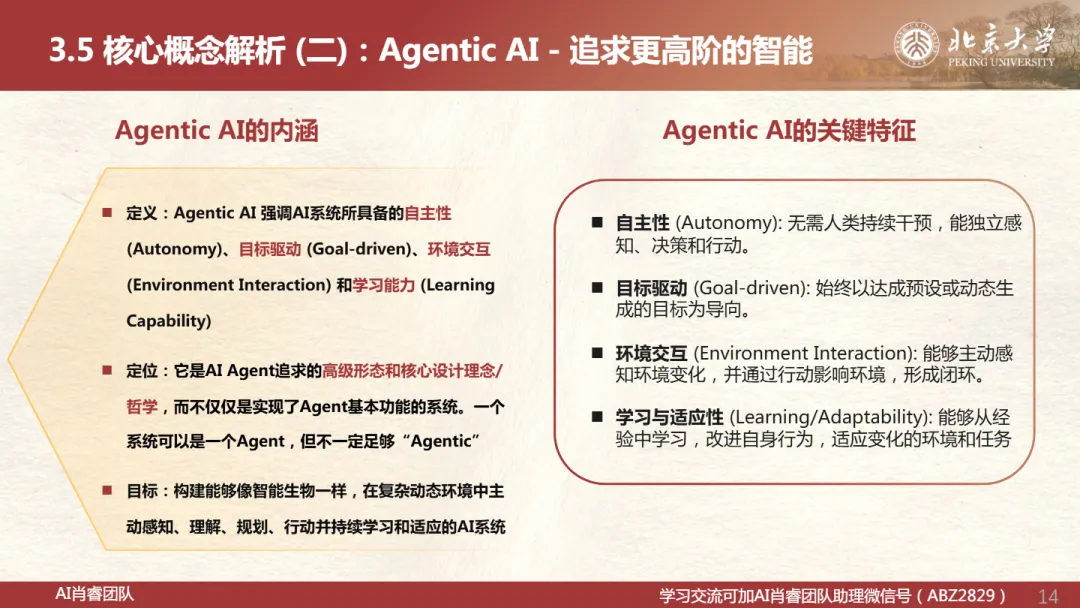• AI Agent的五大核心能力:具备自主性、目标导向、环境交互、学习适应、主动规划的智能实体,能将“模糊需求”转化为“可执行任务流”,如自动生成营销文案、完成竞品分析报告、自动处理售后工单。