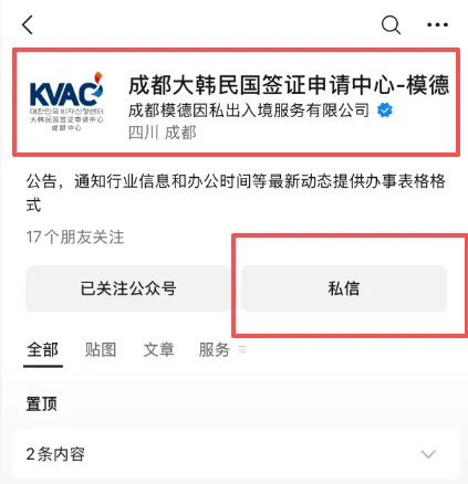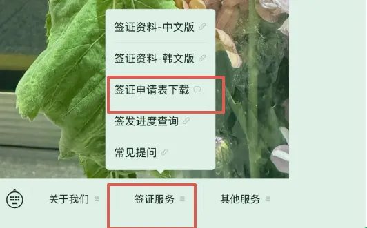 如需下载签证申请表,请在微信搜索成都大韩民国签证申请中心 – 模德公众号,进入私信后点击菜单栏签证服务 — 签证申请表下载,扫描二维码即可下载填写。如下图所示: