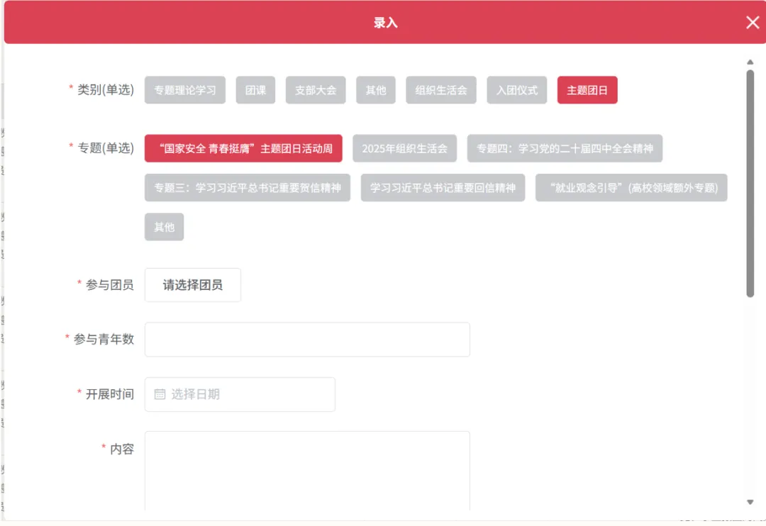 提醒未录入“国家安全 青春挺膺”主题团日活动的团支部及时录入。