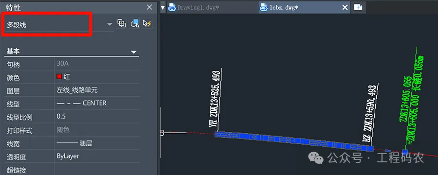 插件仅支持多段线(LWPOLYLINE),如图所示特性必须为多段线。