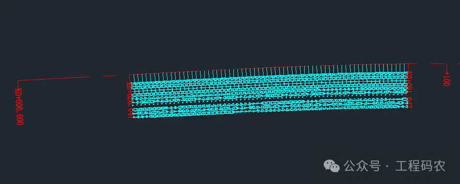插件支持自动判断缓和曲线(以加密折线代替的缓和曲线),判断条件为缓和曲线的加密间距,默认为 1 米。如下图所示:红色为曲线的特征点里程,青色为缓和曲线加密点里程。