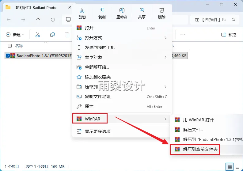 1.右键下载的压缩包,并【解压到当前文件夹】
