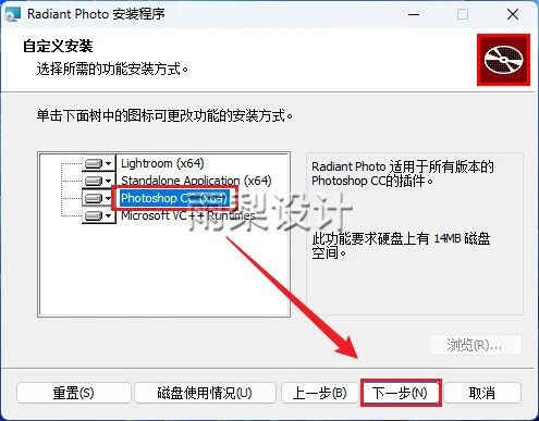 6.选择【Photoshop CC (x64)】,点击【下一步】