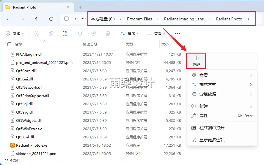 11.复制【Radiant Photo.exe】粘贴到【C:\Program Files\Radiant Imaging Labs\Radiant Photo】