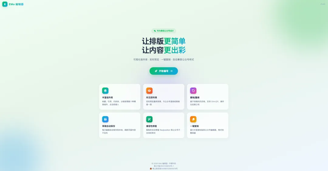 在六天前,我首次发布了EMo编辑器,当成还是一个大致的雏形,经过这几天不停的摸索研究和大量测试,今天迎来了v1.4.0版本。