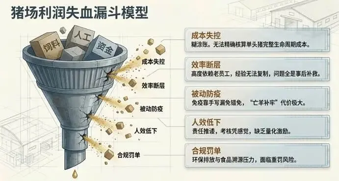在谈数字化之前,我们必须先直面行业最真实的痛点。这些痛点,不是凭空想象出来的,而是无数猪场老板每天都在经历的 “切肤之痛“: