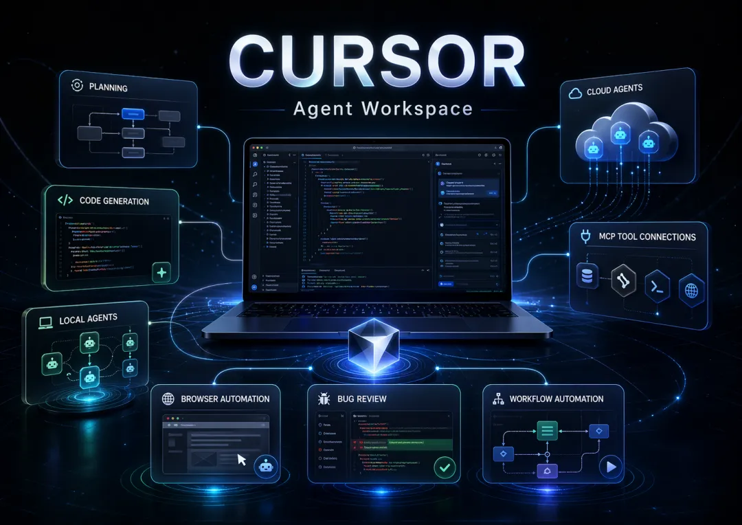到 2026 年,Cursor 正在越来越明确地把自己定位成一个围绕 Agent 展开的软件开发工作空间:它能理解代码库、先做计划再编码、切换本地与云端 Agent、在隔离 worktree 中并行实验、控制浏览器做 UI 测试、通过 MCP 接外部系统、用 Bugbot 做 PR 审查,甚至把自动修复和持续自动化串进研发流程。