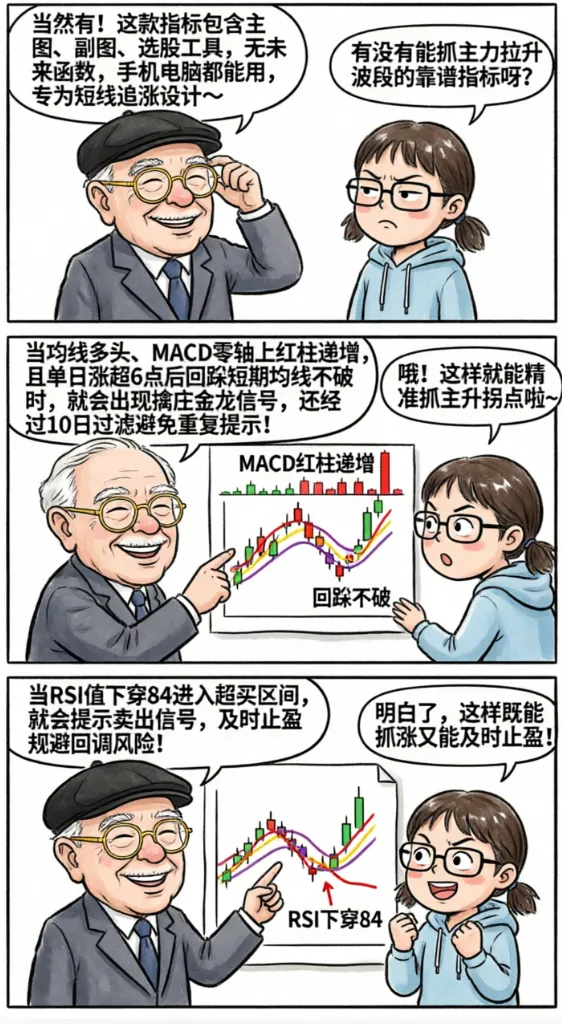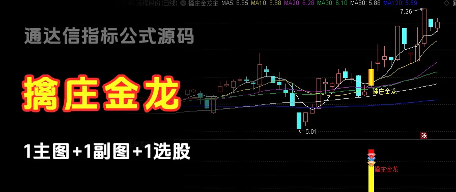 源码【擒庄金龙】| 主图+副图+选G | 通达信指标公式套装