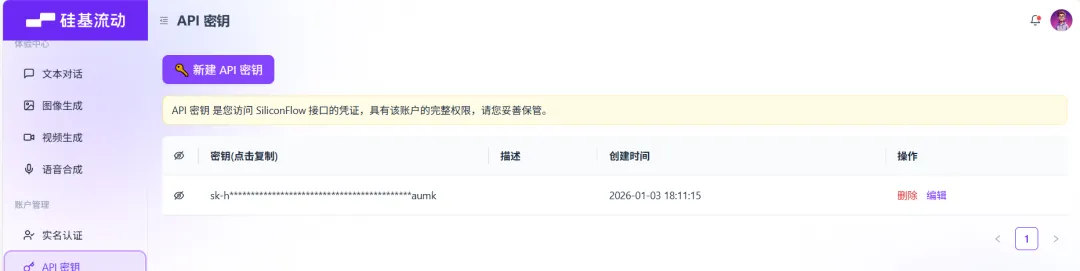 4、点击用户名,将密钥复制到刚才介绍的位置