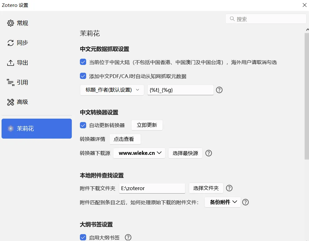 茉莉花插件是一个简单的 Zotero 中文频件,旨在提升 Zotero 中文用户的使用体验,主要功能有: