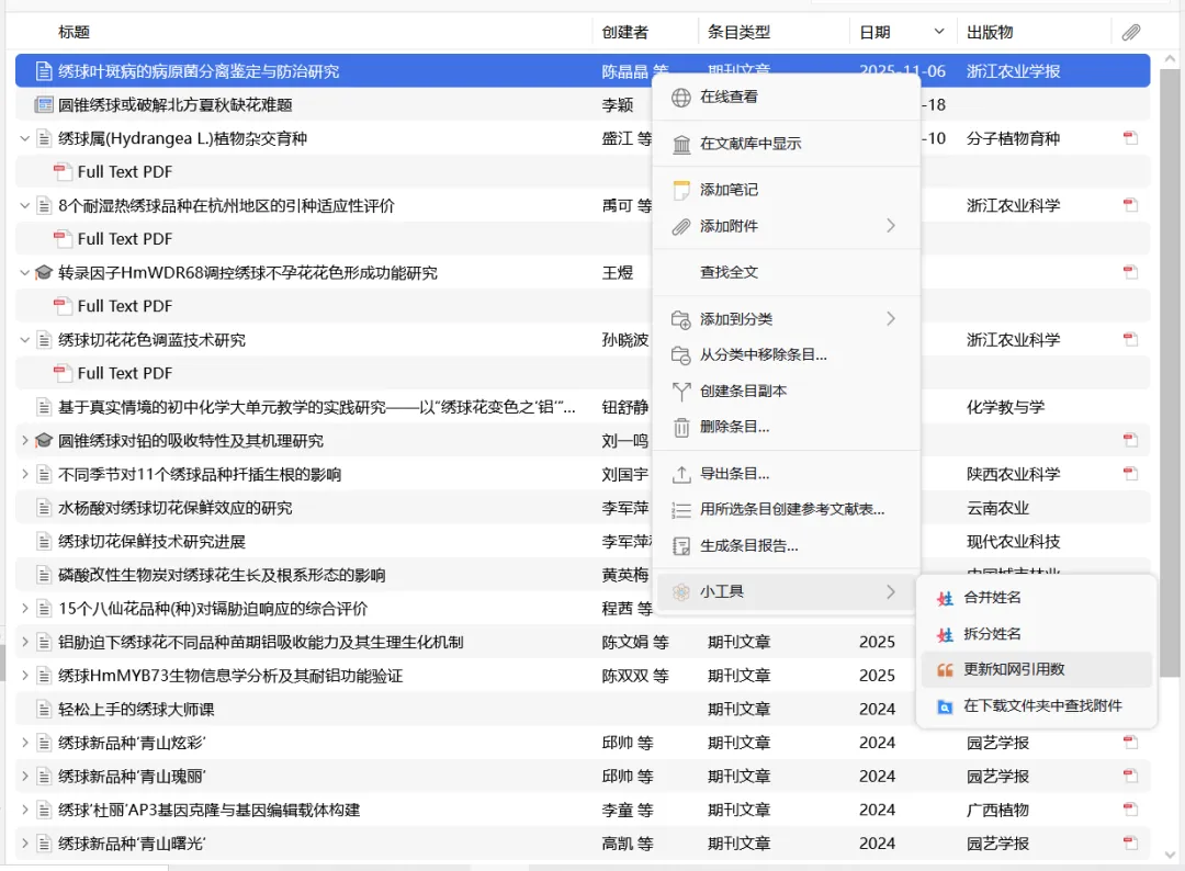 核心价值:这款专为中文用户打造的插件,能够自动识别并抓取中文文献的完整元数据,智能处理作者姓名格式,并支持一键更新文献的引用次数、核心期刊标识等关键信息。从此,拖入一个正确命名的PDF文件,即可自动生成一条结构完整、信息丰富的文献条目,让中文文献管理变得前所未有的轻松。