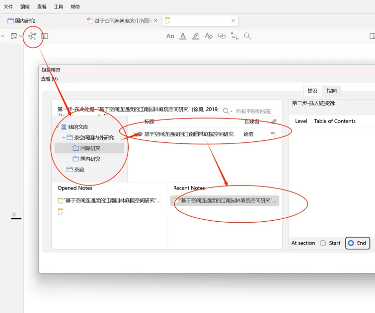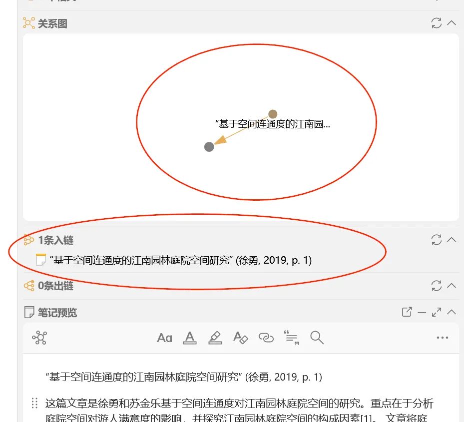 被链接的笔记将构成笔记链接,这在大量文献阅读和做文献综述时,可以更好地进行文本之间的比对分析。