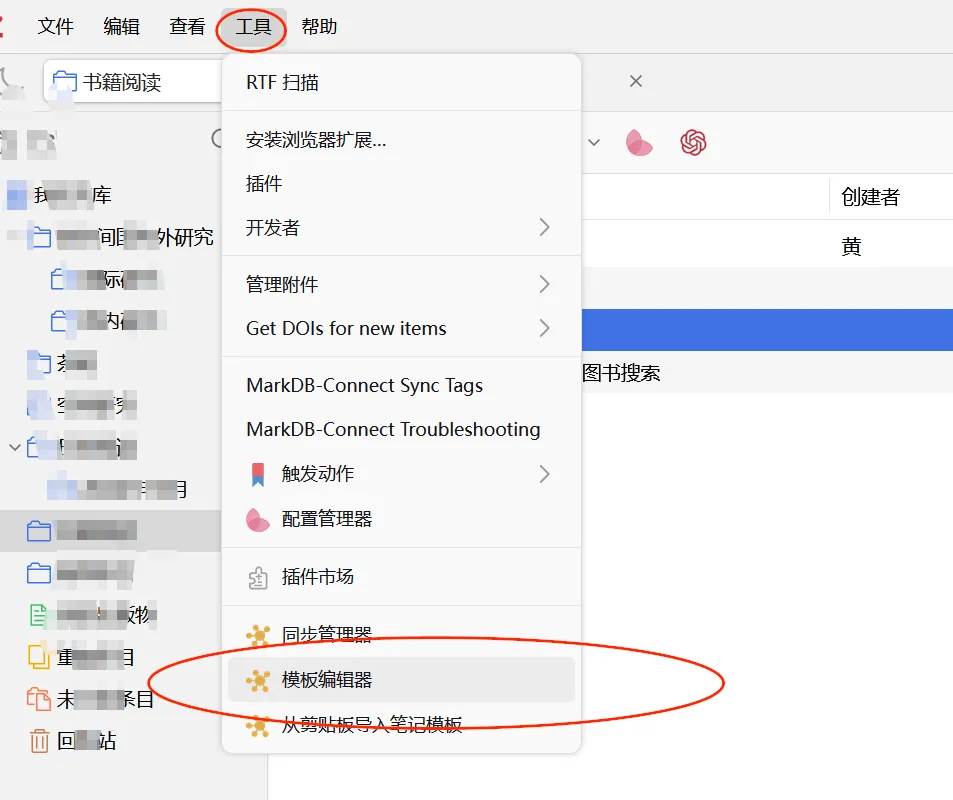 在安装插件后,点击,工具-模板编辑器
