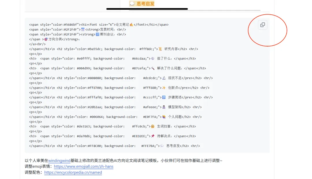 复制笔记模板的代码