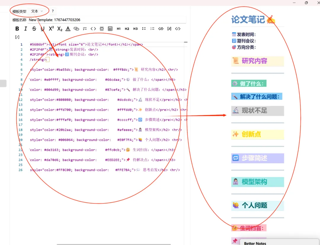 这个功能可以用于编辑笔记模板,也可以直接导入优秀的笔记模板,从而对笔记进行形式统一管理。