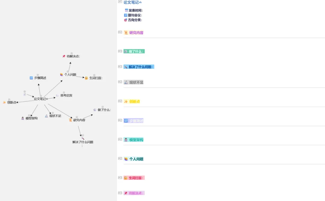 解决痛点:笔记散乱无章,不同文献间的观点难以建立联系,缺乏统一的笔记规范。