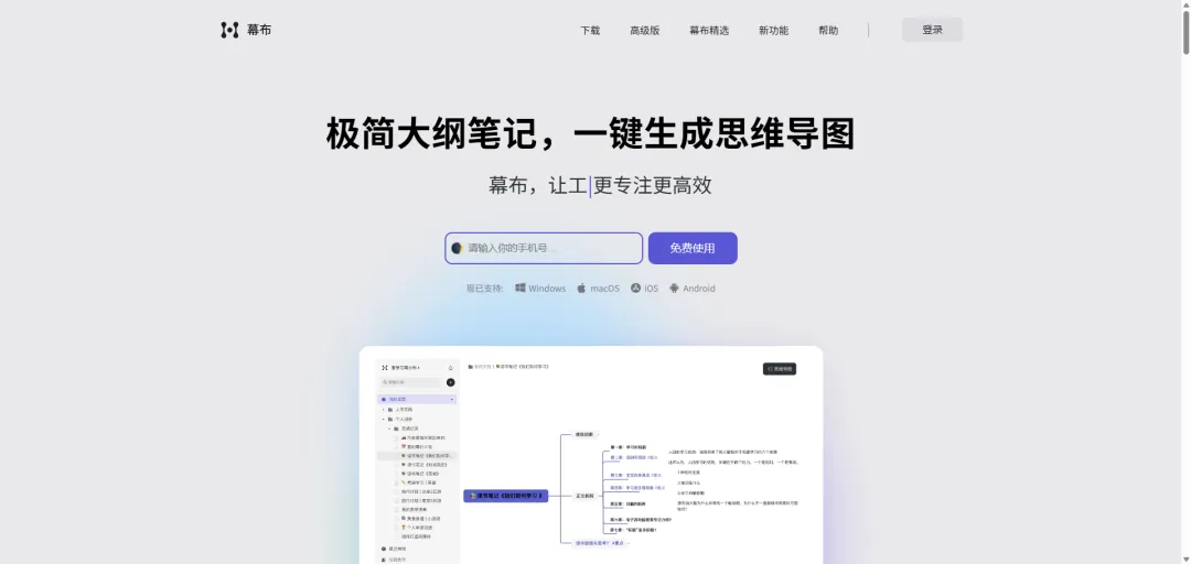 一句话定位:用大纲的方式写笔记,一键生成思维导图,让知识结构一目了然。