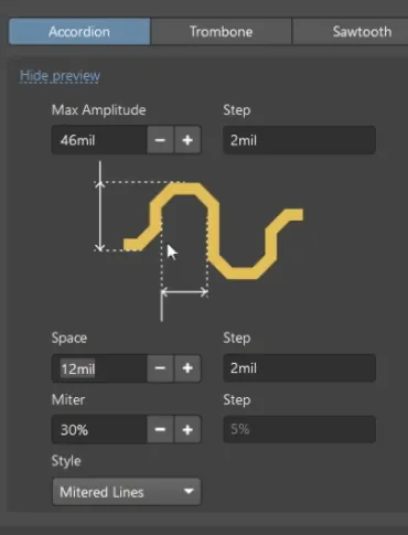 Max Amplitude 指的是蛇形线的一个高度,默认100mil,可以不改,递增幅度建议改为2mil;