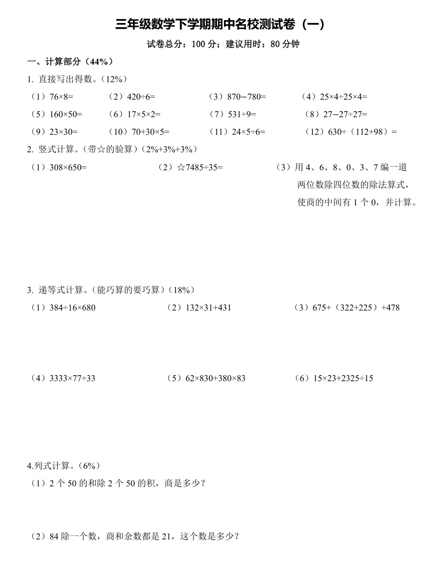 ⭐️【1-5年级】期中真题卷 ⭐️