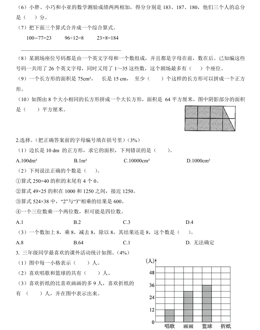 考前必刷!闵行三下期中真题卷+详细解析,可打印(附期中专项练习)