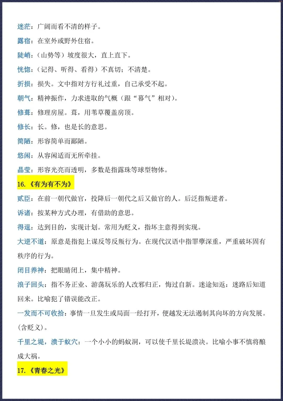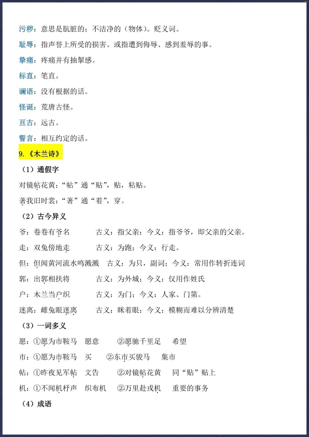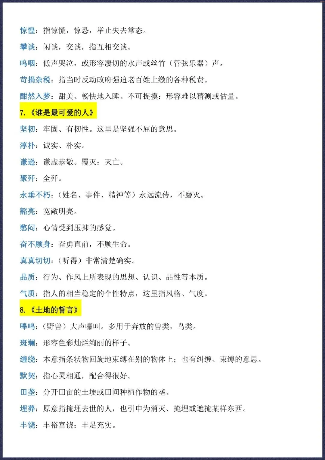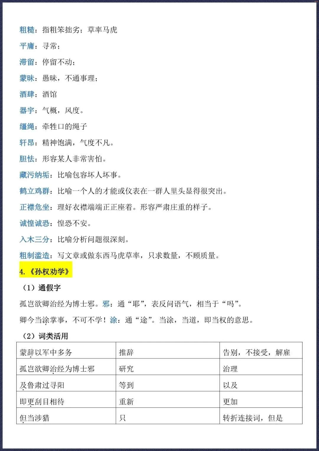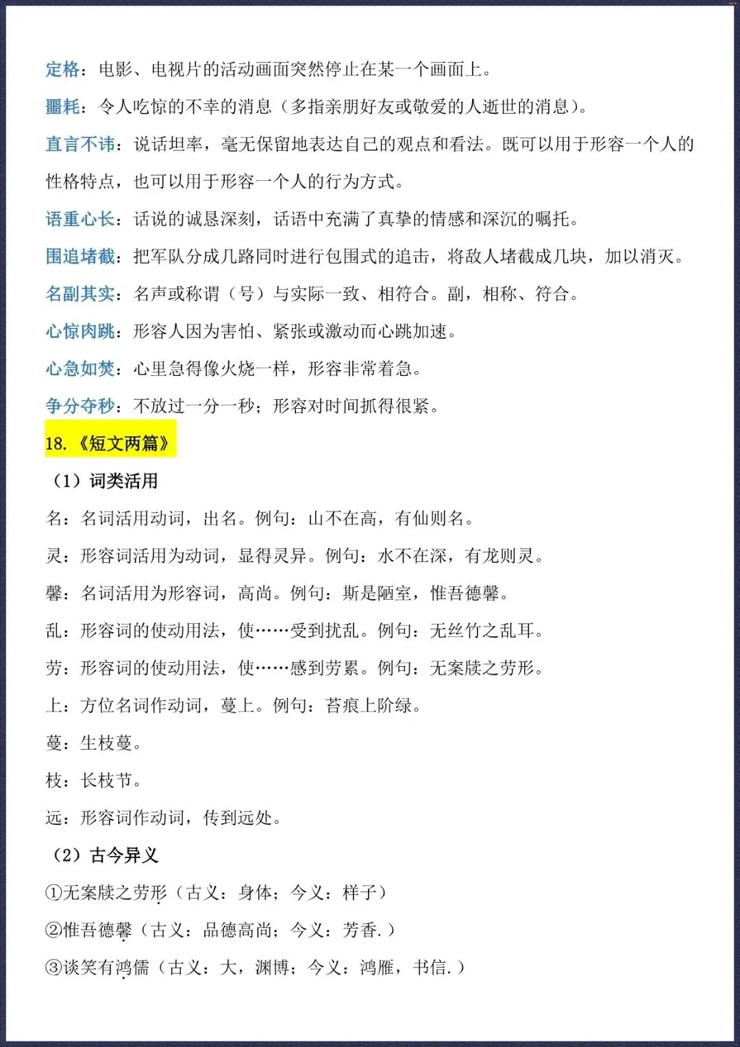 所有的知识都没有错误,排版也很清晰有序,可以用来晨读背诵、课堂查漏、考前冲刺。已经对冗余的内容进行删减,把排版逻辑整理好,并且增加期中考试中必不可少的现代文主旨和人物形象等内容,弥补了基础资料上的不足。基础薄弱的学生可以夯实字词的基础,中等水平的学生可以巩固文言和默写的内容,优秀学生可以冲击阅读高分,整个过程都可以满足不同层次学生备考的需求。