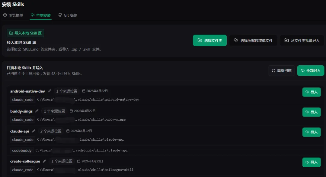 • 统一收纳:所有 Skills 集中管理,告别多目录混乱 -