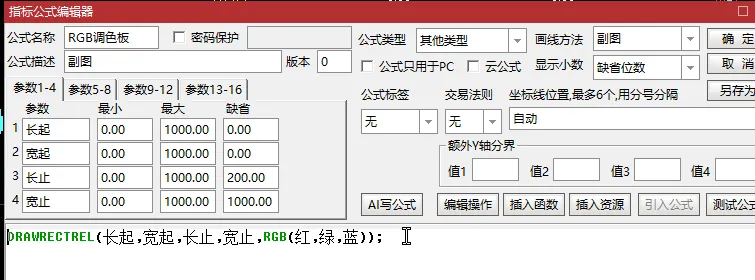 到此,关于通达信的绘图函数用法基本可以满足需求了,最后,为了更方便读者理解调整调色板,把参数修改一下