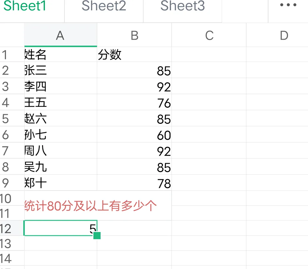 可以看出结果是5个分数在80分以上。