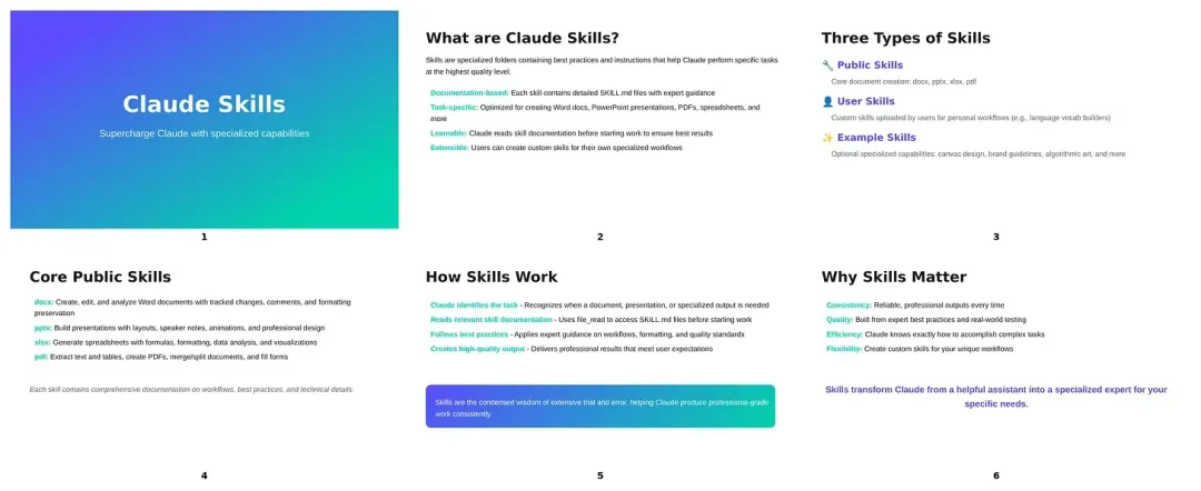 原文一上来举的例子很接地气:同样是让 Claude 做一份演示文稿,不开 Skills 时,结果很容易像十几年前的课堂作业;一旦套上符合品牌规范的 Skill,颜色、版式、表达风格就会明显像“成品”而不是“草稿”。这不是 Claude 突然变聪明了,而是它终于不再每次都从零猜你的要求。