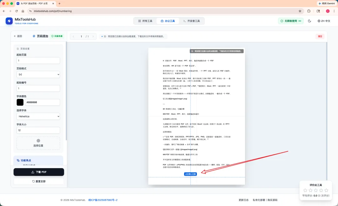 PDF 加页码,免费!不上传!点哪儿放哪儿!支持中文!浏览器直接搞定!