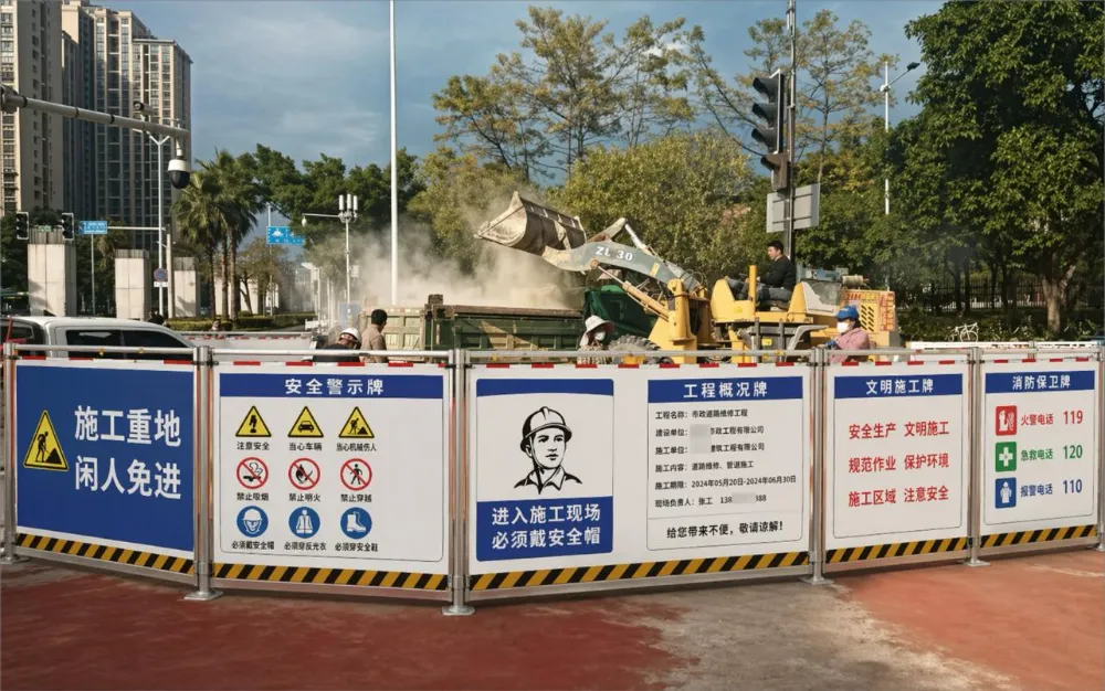 原图扔给image2,这次加上了比较复杂的提示词,包括参建单位、负责人,甚至还有负责人的电话,它都能老老实实地给放到安全围挡上面(真敢写单位和手机号,吓得我赶紧手动打码)。
