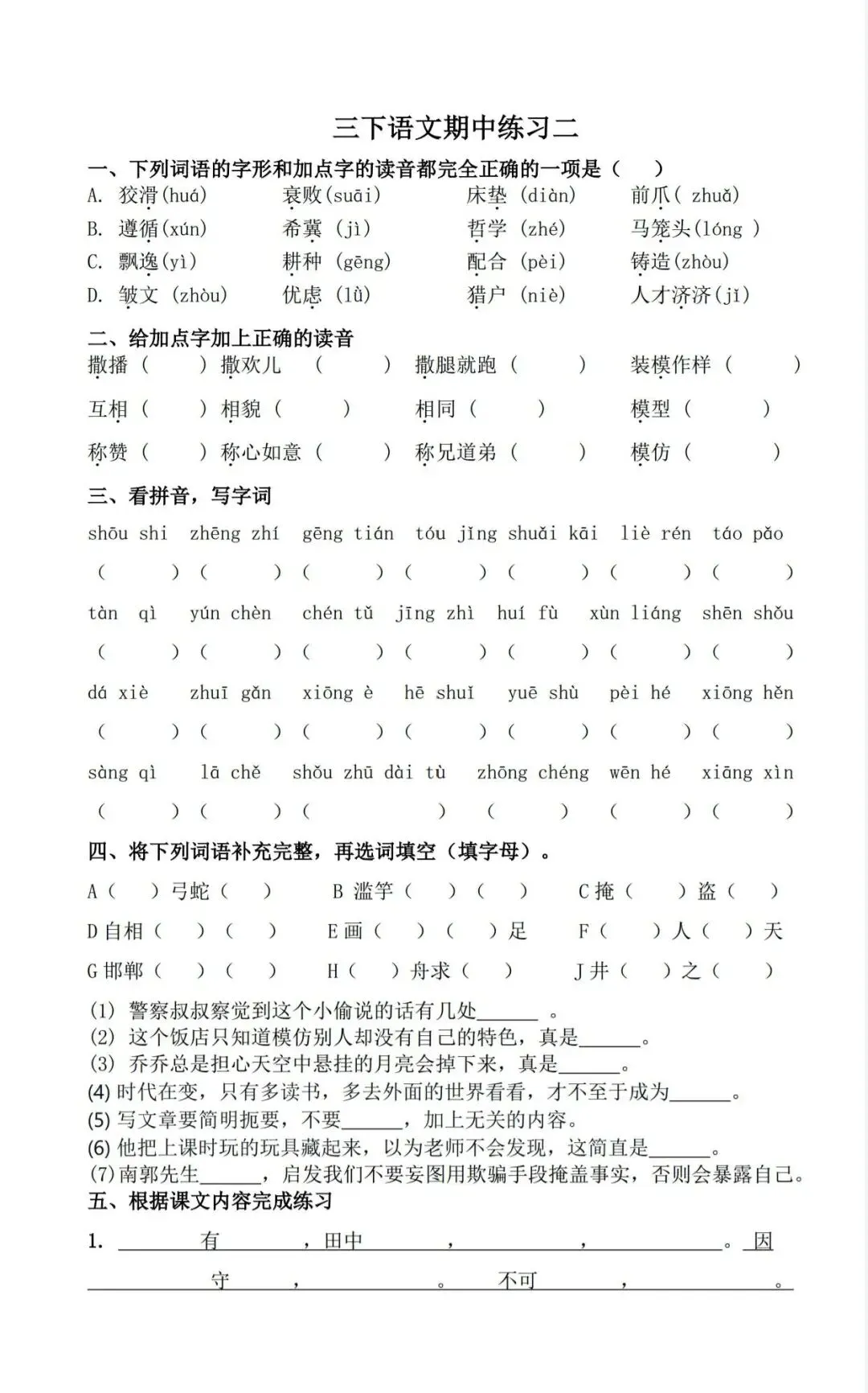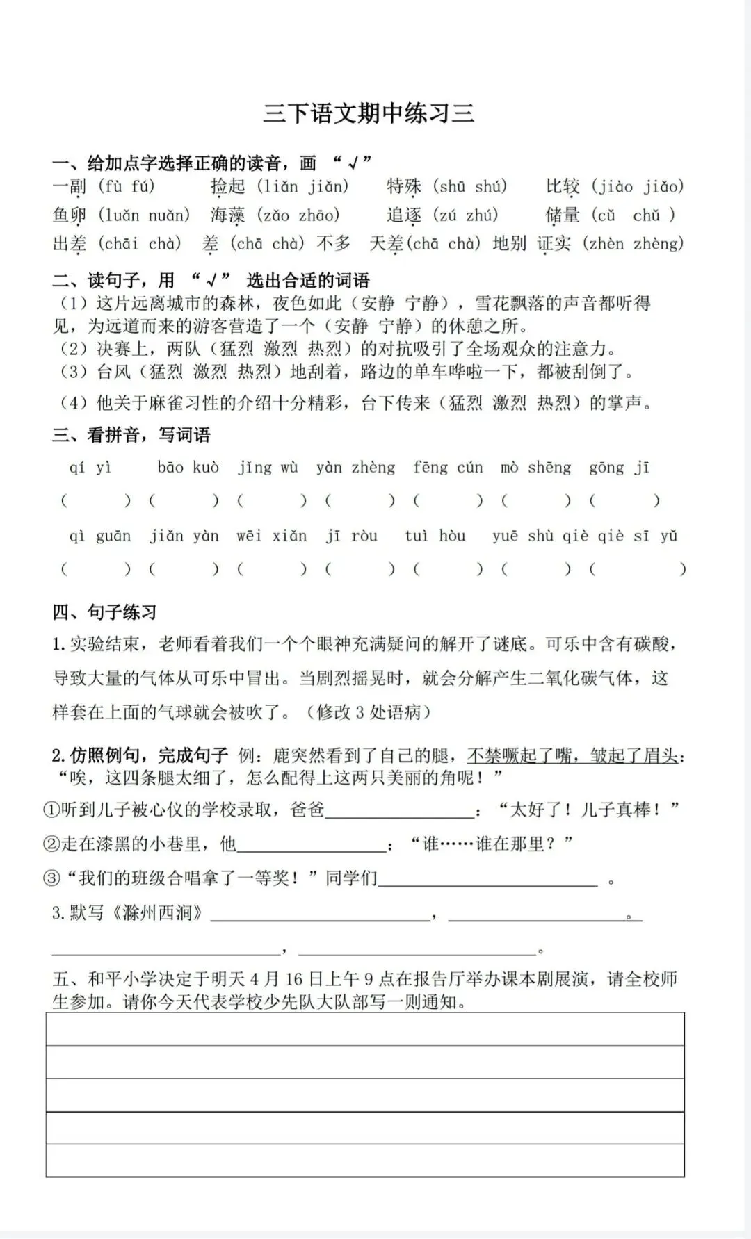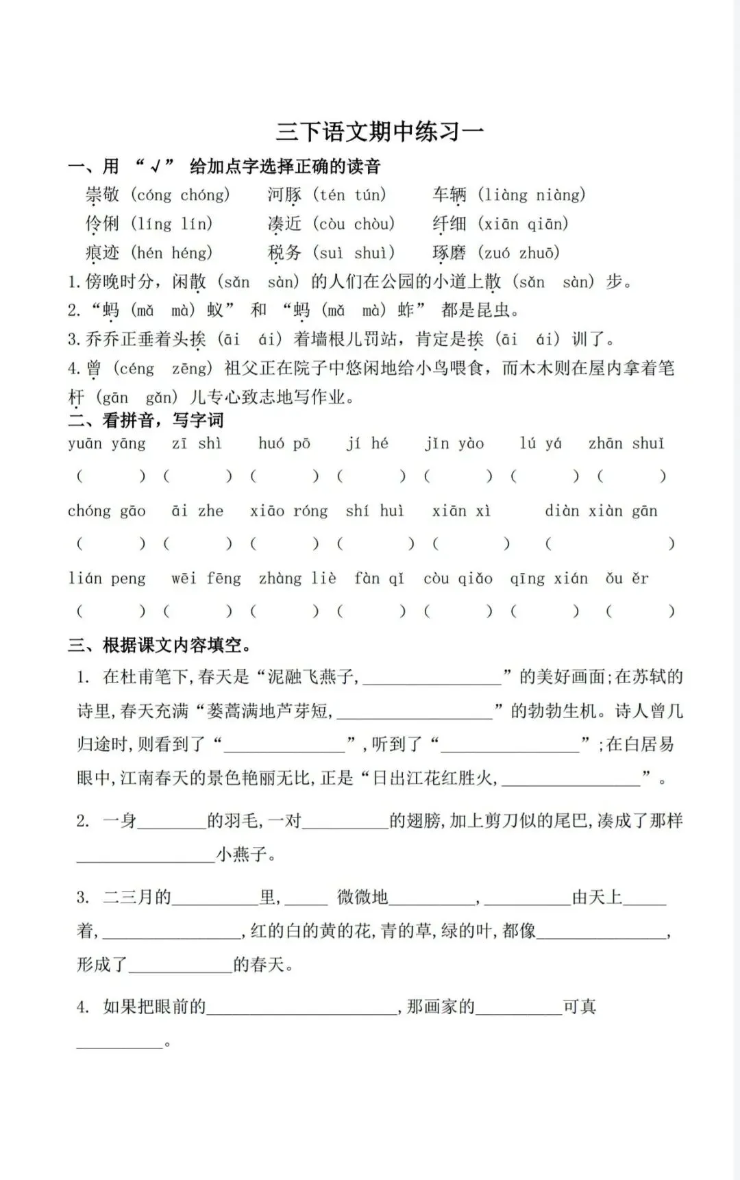 三年级语文下册期中考前冲刺练习(电子版可打印) 今天晴天妈妈爱学习;给大家分享:三年级语文下册期中考前冲刺练习(电子版可打印)每天持续分享更多的优质学习资料。 以下为部分截图,具体看完整PDF文件 (温馨提示:文末有电子版领取方式) 完整电子版: ①:在公众号对话框中回复:3821 (不是在“留言”中发数字)