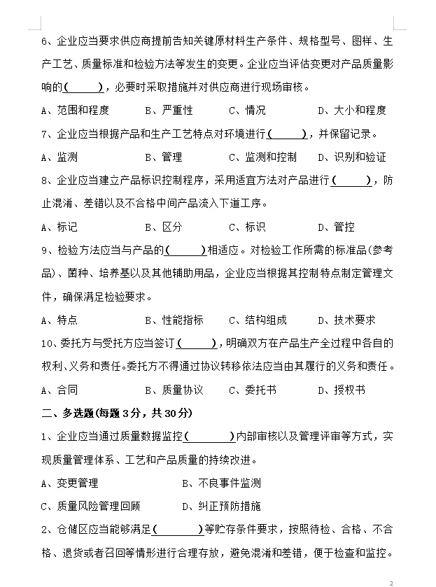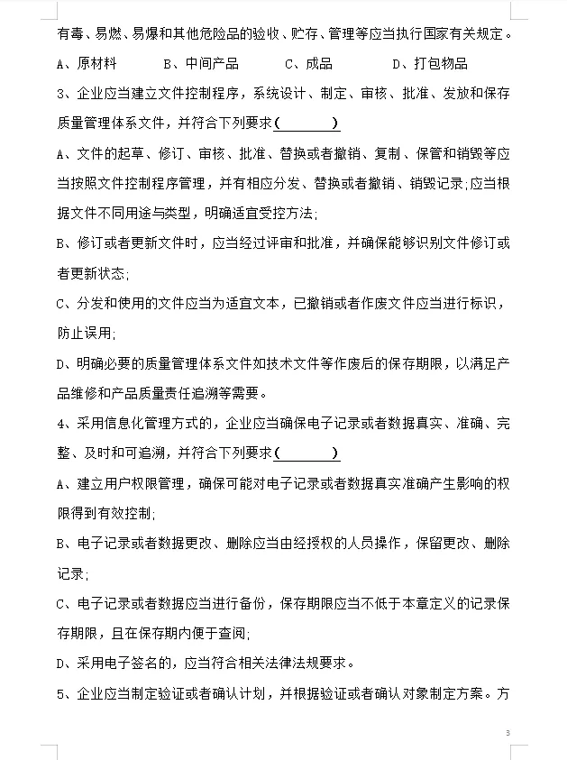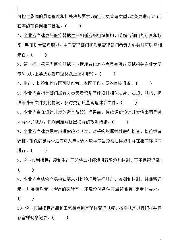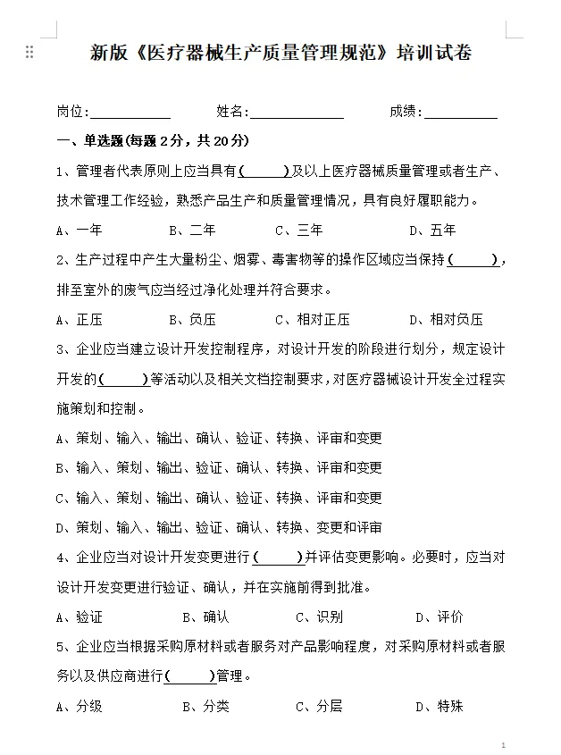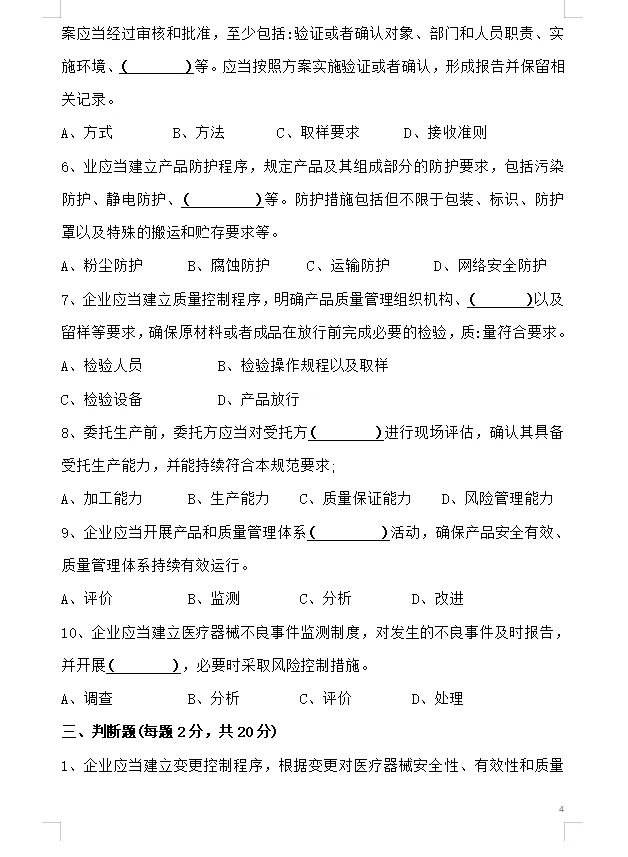 【word版】最新4月GMP试卷《医疗器械生产质量管理规范》(附答案)