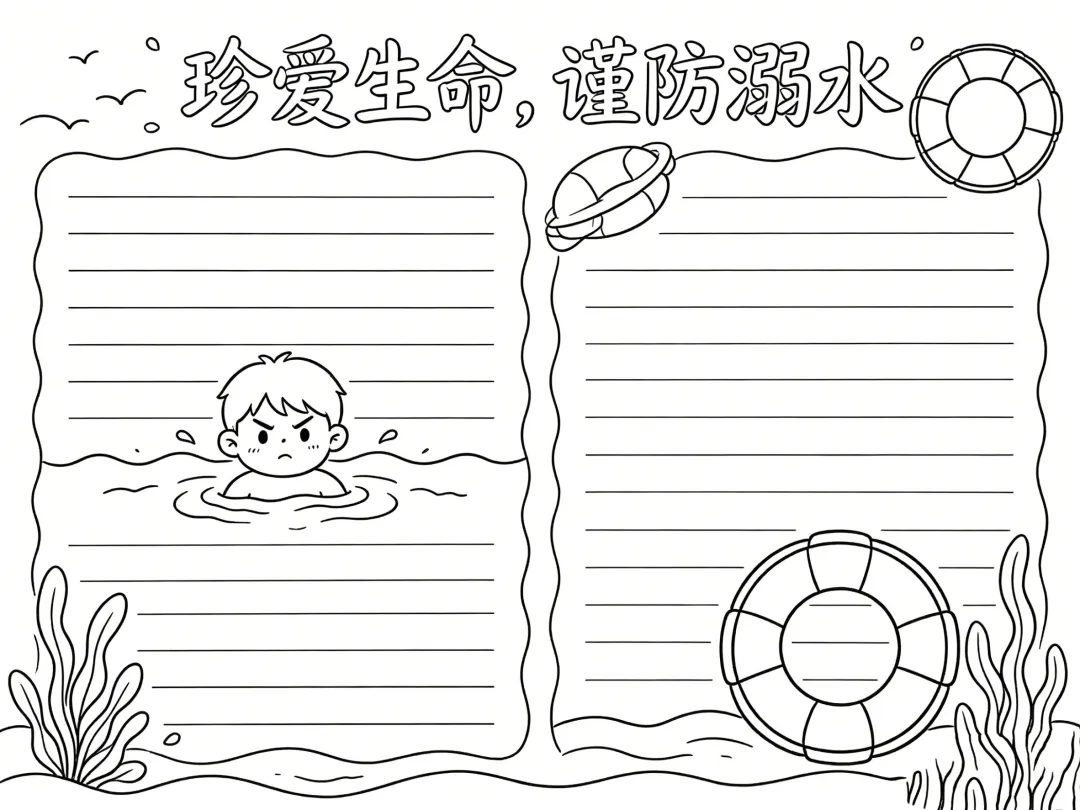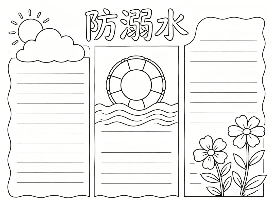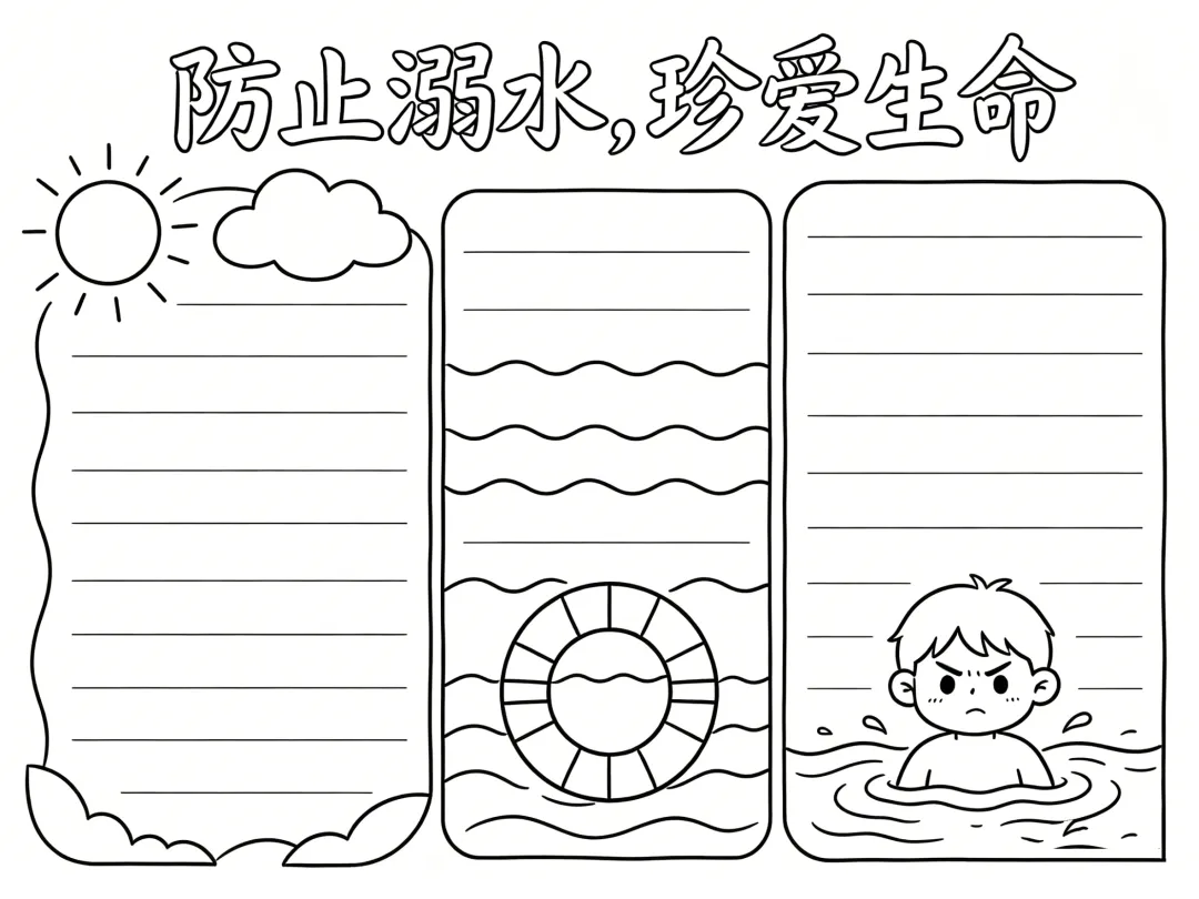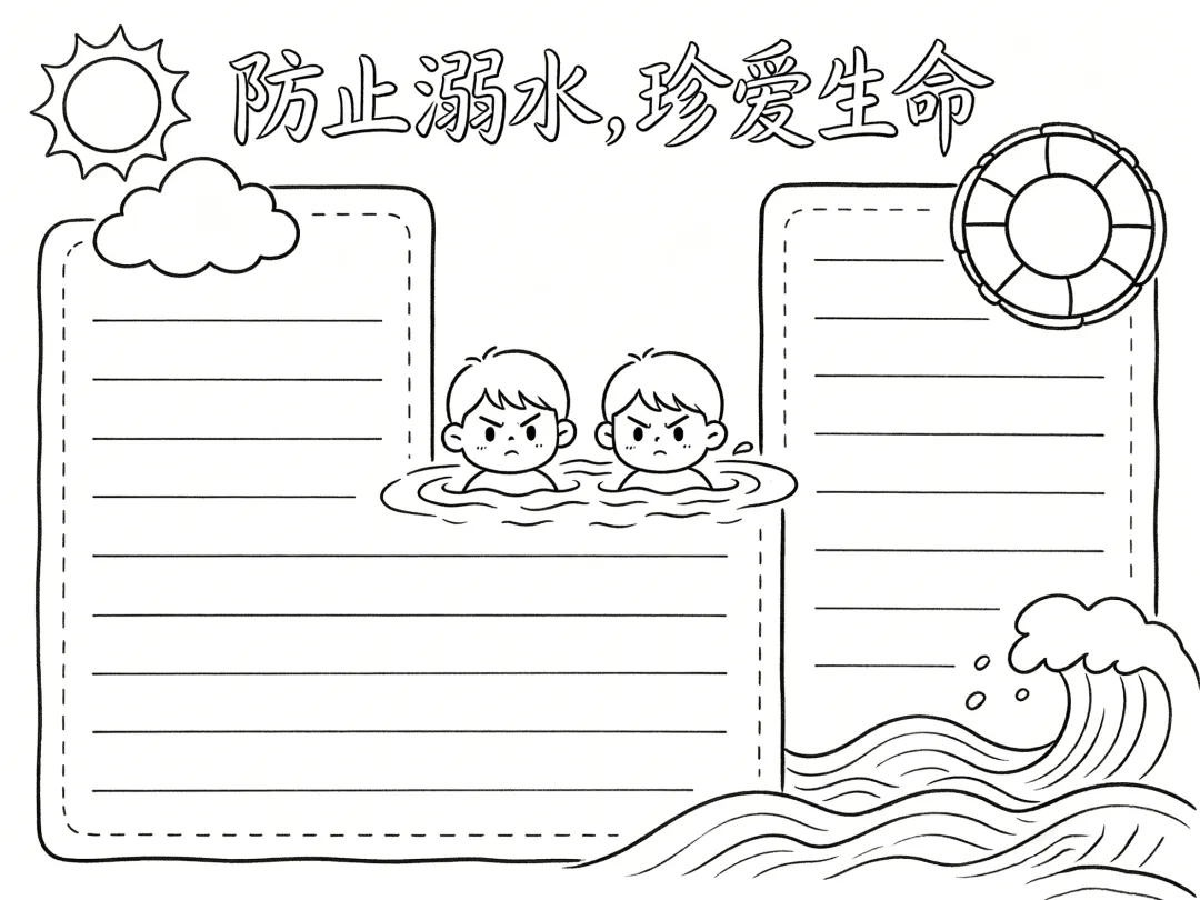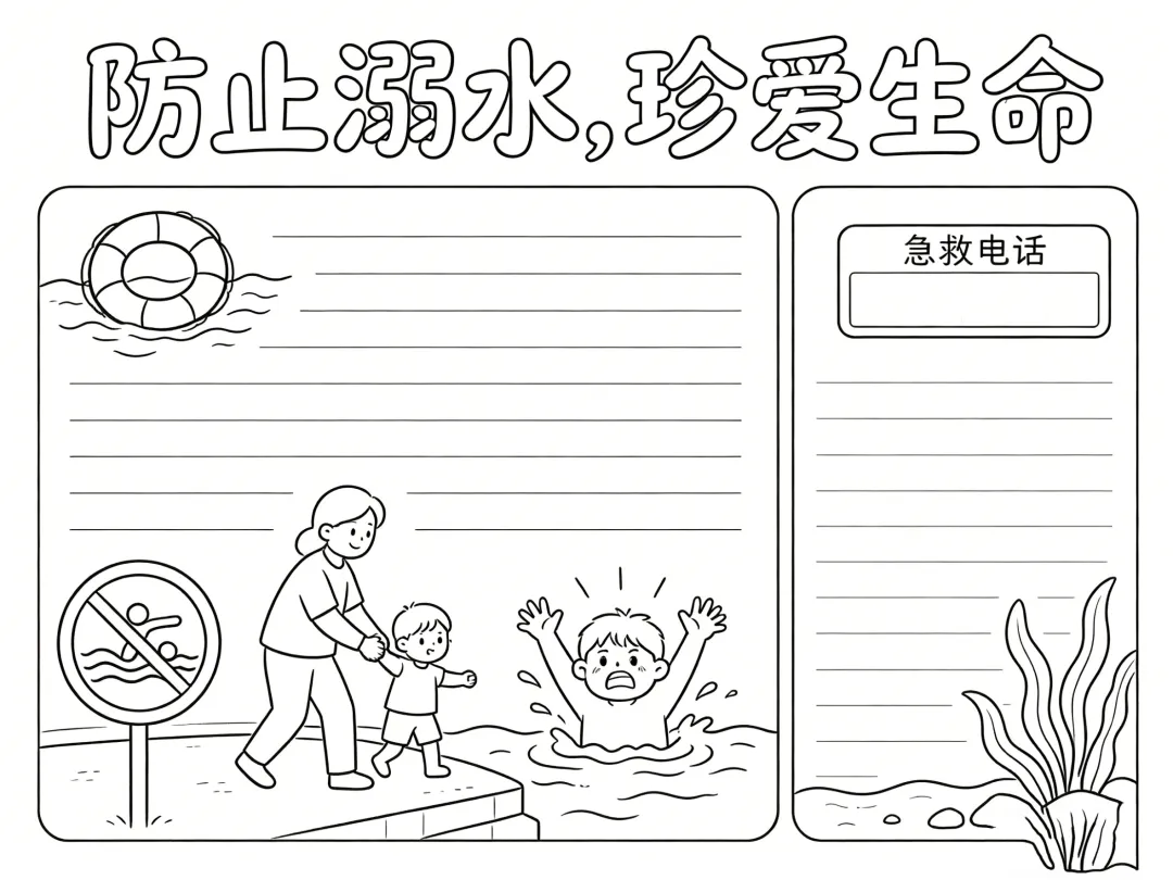 防溺水主题手抄报线稿,简单漂亮,图片可打印