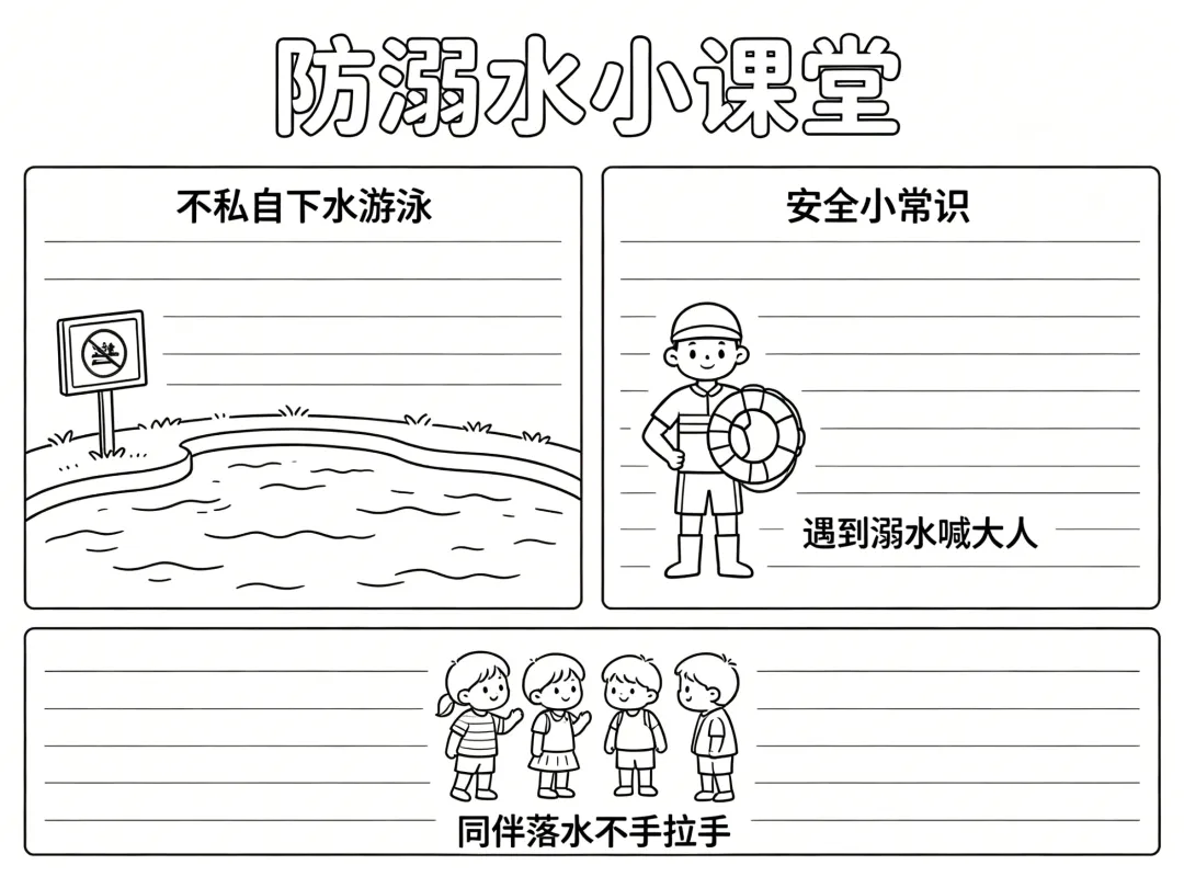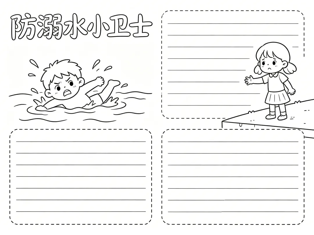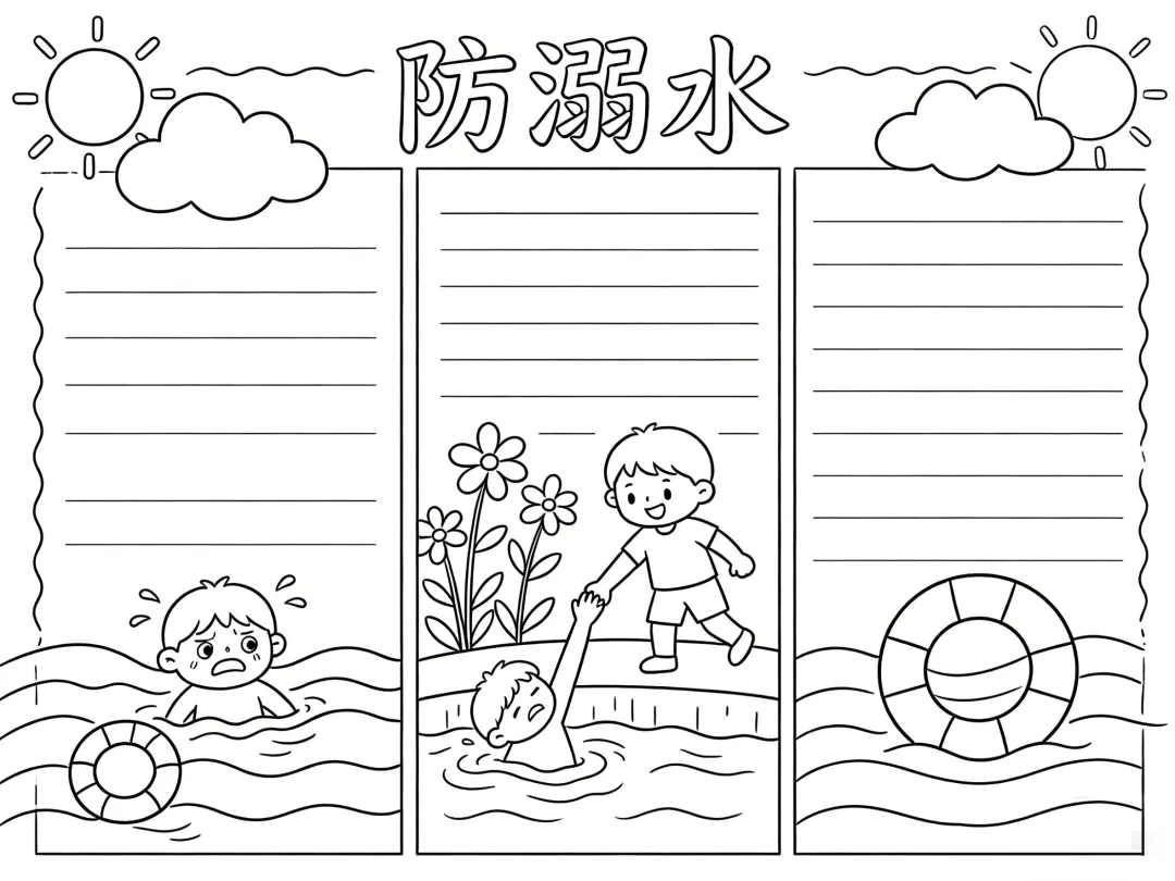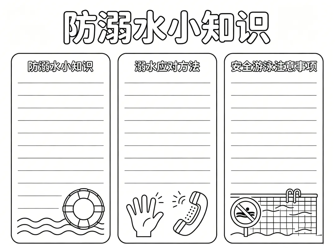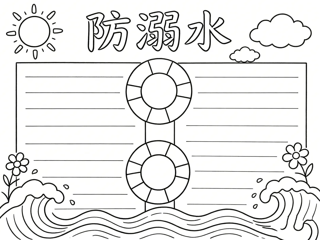 防溺水主题手抄报线稿,简单漂亮,图片可打印